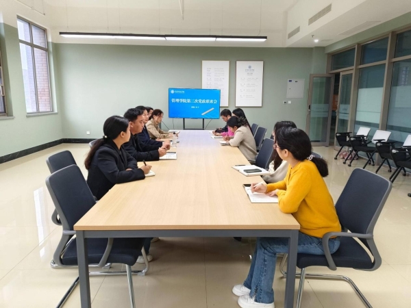 为进一步凝聚党政合力,紧扣新学期重点任务,协同推进学院各项工作有效落实,管理学院于2025年10月9日下午在立业楼M303召开2025-2026学年第一学期第三次党政联席会议,会议由学院办公室主任唐朝晖主持,管理学院院长赵芳鋆、党总支书记马鹏辉、副院长胡亚兰、党总支副书记王晗、院长助理赵则皓、各教研室主任及办公室人员参加了此次会议。