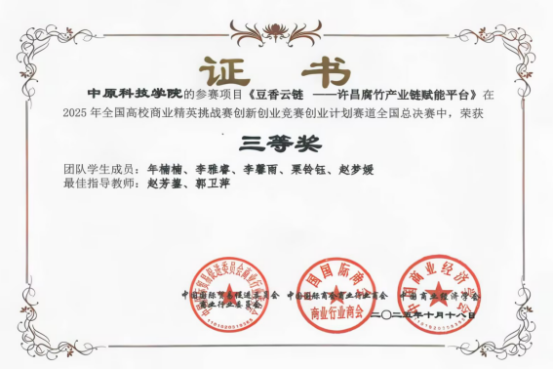 此次获奖,不仅是管理学院“以赛促教、以赛促学、以赛促创”育人理念的生动实践,也是学生将专业理论转化为创新成果的综合体现。未来,学院将继续依托学科竞赛平台,深化产教融合、推进跨专业协同,助力学生在实践中锤炼本领、提升素养,为培养具有创新精神、实践能力与社会责任感的高素质人才不断注入新动能。