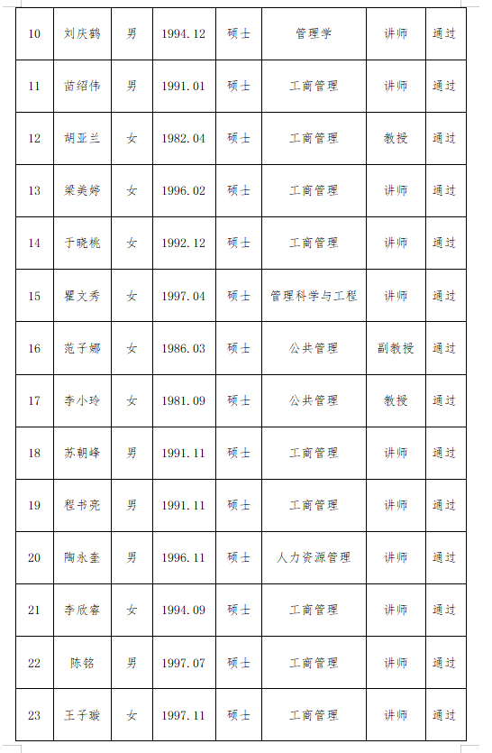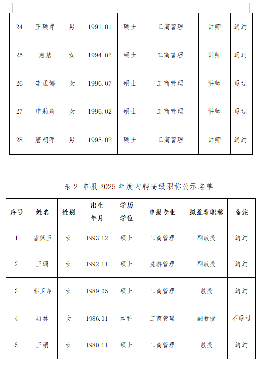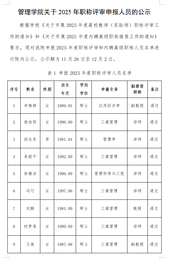 管理学院关于2025年职称评审申报人员的公示